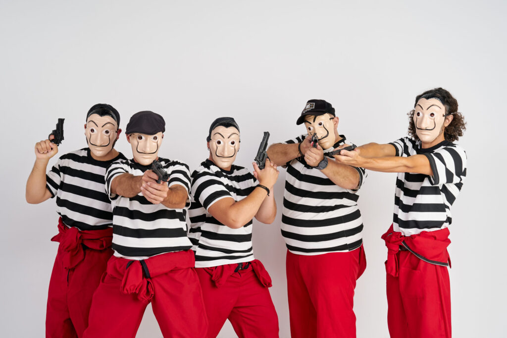 Armados con máscaras de Salvador Dalí, vestidos de rojos y un plano brillante… ¡para que los niveles de fiesta y diversión estén asegurados toda la actuación!
